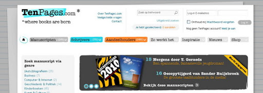 “TenPages is de eerste website ter wereld waar lezers aandelen kunnen kopen in manuscripten van onbekende schrijvers. Als schrijver plaats je minstens 10 pagina’s (vandaar de naam) van je manuscript op de website. Vervolgens kun je als lezer voor € 5,- per stuk een aandeel kopen. Als het manuscript binnen vier maanden 2.000 aandelen heeft verkocht, wordt het uitgegeven door een bekende uitgeverij en verkocht via diverse boekhandels. De aandeelhouder deelt vervolgens mee in de opbrengst van de boekverkoop.”