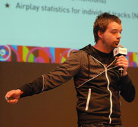 Hessel van Oorschot (Tribe of Noise) lanceert met zijn presentatie een nieuw bestandsformaat voor muziekalbums: Beam. De kern van het product: “Wij willen de controle teruggeven over de digitale distributie van albums.” Via het Beam-platform kunnen artiesten vaste of tijdelijke codes genereren, die ze vervolgens kunnen verspreiden.