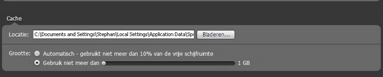 - Geef aan dat de cache niet meer dan 1 GB mag bedragen (zie hieronder).