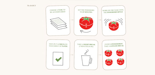 Het is heel simpel: een pomodoro is een blok van 30 minuten. In de eerste 25 minuten sluit je je helemaal af en behandel je een of enkele van je acties uit je takensysteem. Volledige aandacht dus. Na die 25 minuten neem je 5 minuten pauze om bijvoorbeeld even te lopen, waarna een volgende pomodoro van 30 minuten start. Er zijn de nodige gratis pomodoro-timers te vinden. Voor de Windows en Mac desktop is er pomodairo en focus booster, maar je kunt ook kijken naar uitgebreidere pauzesoftware zoals Workrave. Als Apple-app gebruik ik graag Simple Pomodoro Timer, terwijl de Android-gebruiker kan kijken naar Pomodroido.
